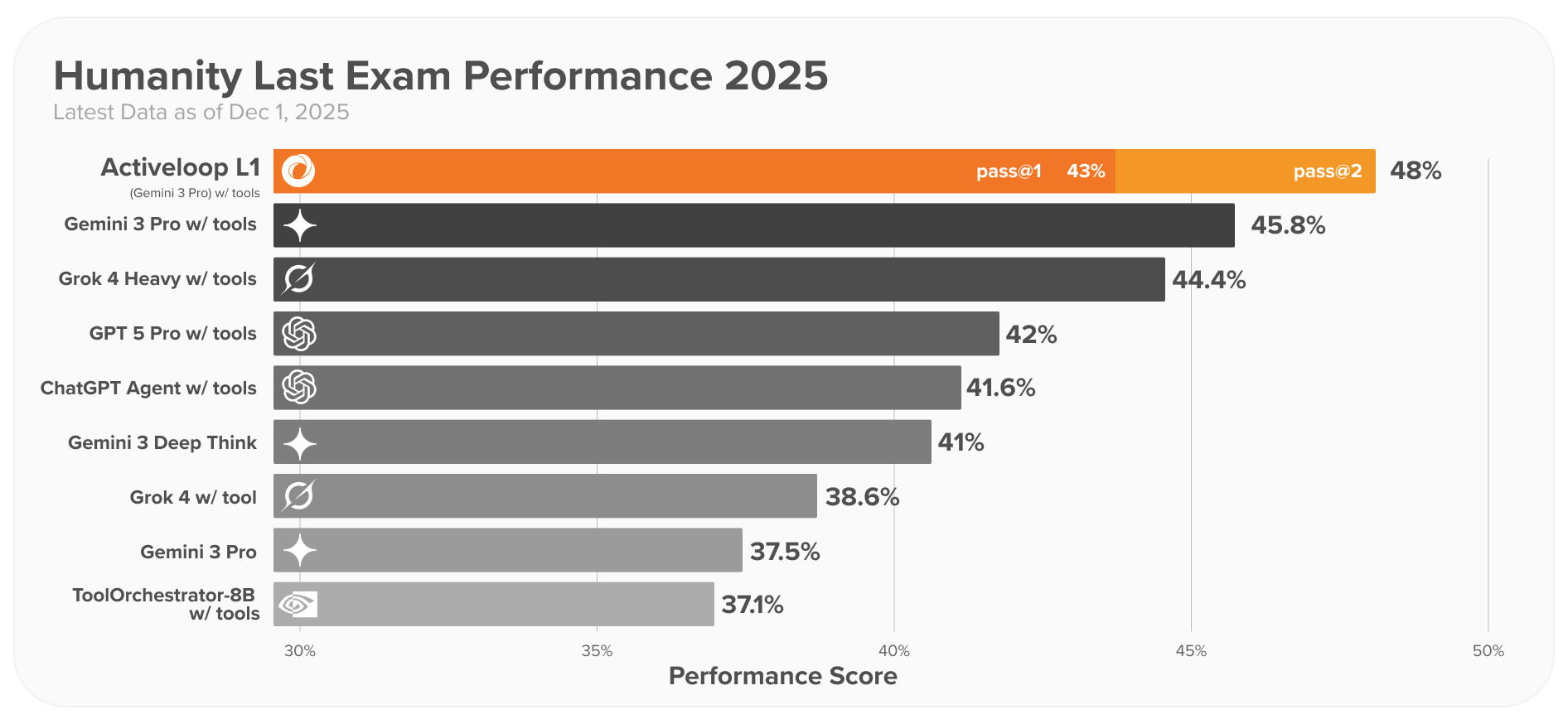 Equipping the data agent with 3 tools: Code Interpreter, Web Search and Scientific Search via Activeloop API we achieve state of the art results on HLE benchmark.